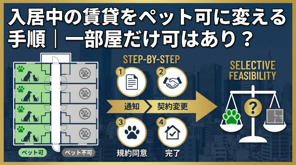 入居中物件のペット可化は検討できますが、最初に「既存契約を変える話」か「新規募集条件を変える話」かを切り分けることが重要です。