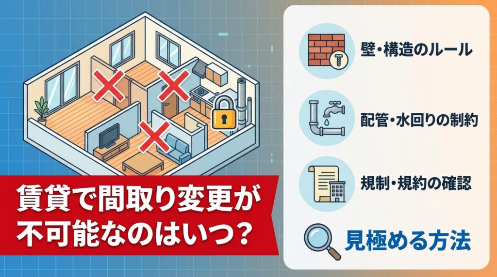 この記事では、賃貸の間取り変更が止まりやすいポイントを、壁・配管・規約の順で整理しました。